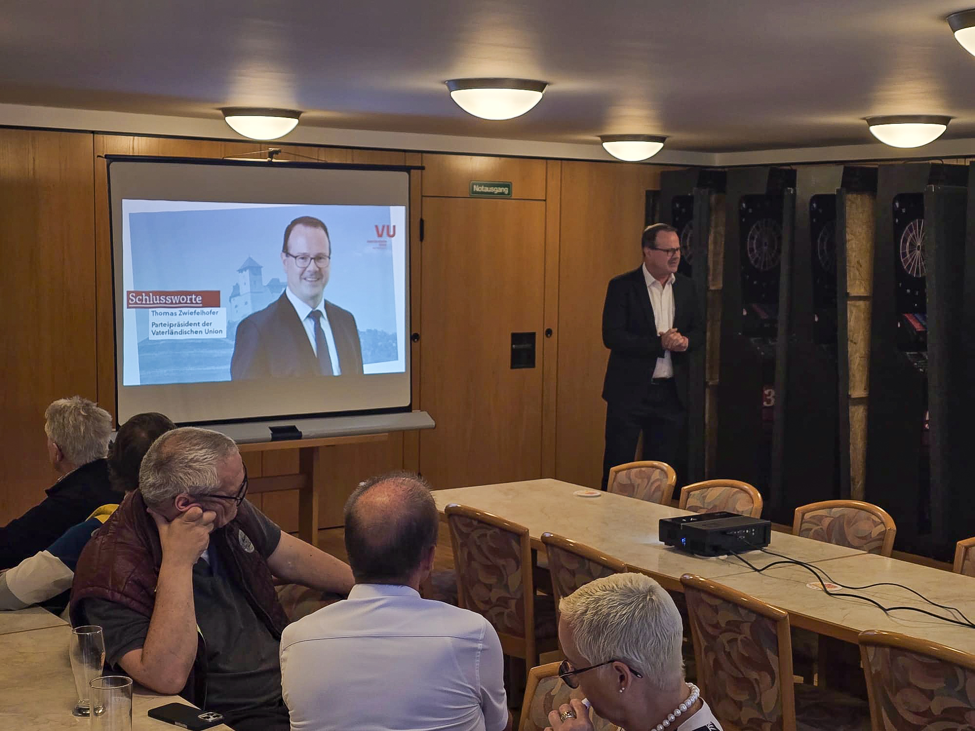Zum Abschluss richtete Parteipräsident Thomas Zwiefelhofer das Schlusswort an die Anwesenden und betonte die Wichtigkeit des gemeinsamen Engagements für die Zukunft unserer Gemeinde und des Landes.
